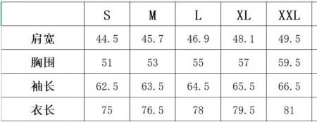 XL:肩幅48 胸囲112着丈76CM