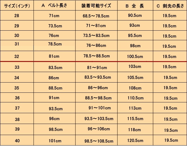 全長サイズ95cm,ウエストサイズ65 ~ 73cmが適当である