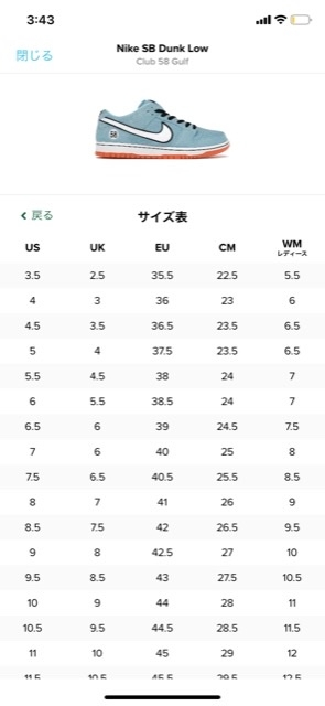 ナイキの靴サイズ表