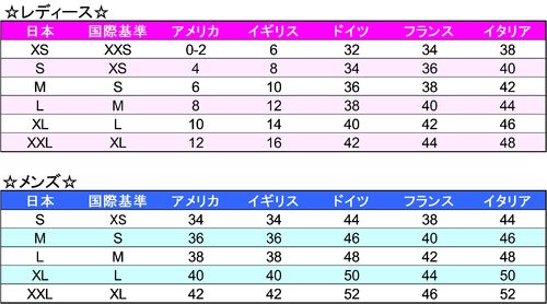 ☆日本と海外のサイズ比較表☆レディース・メンズ ウェア