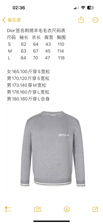 2024年10月9日秋冬原版復刻新品入荷ディオール カシミヤ セーター YIYI工場S-L