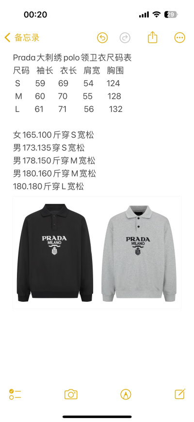 2024年10月9日秋冬原版復刻新品入荷PRADA スウェット YIYI工場S-L