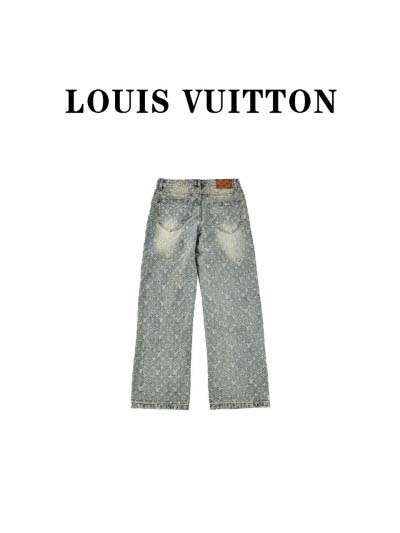 ルイヴィトン24Fwフル刺繍ジャガードグラデーションウォッシュデニムパンツ高品質